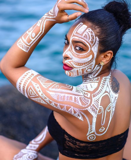 Nigeria's reality television star popularly known as TBoss, has channeled her inner River Goddess in some topless, face and body paint photo-shoot at the river.